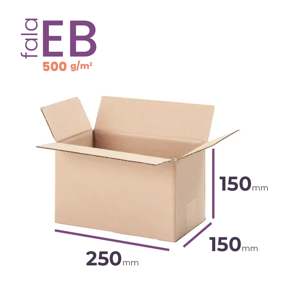 Karton klapowy 250x150x150 mm (wymiar zewnętrzny) to mocne opakowanie bardzo dobrze sprawdzające się w wysyłce ciężkich i delikatnych przedmiotów. Wykonany z trwałej 5-warstwowej tektury (fala EB, wysoka gramatura 500 g/m2), łączy w sobie funkcjonalność, trwałość i ekologiczne pochodzenie – potwierdzone certyfikatem FSC.