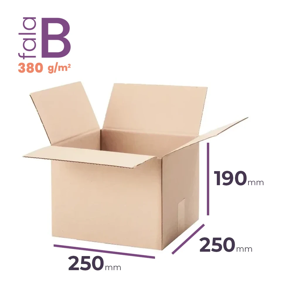 Karton klapowy o wymiarach 250x250x190 mm doskonale sprawdza się w codziennym użytkowaniu. Świetnie nadaje się jako kompaktowe opakowanie wysyłkowe na nieduże przedmioty. Zapakujesz do niego artykuły handmade, kosmetyki do makijażu, dodatki modowe czy akcesoria domowe.