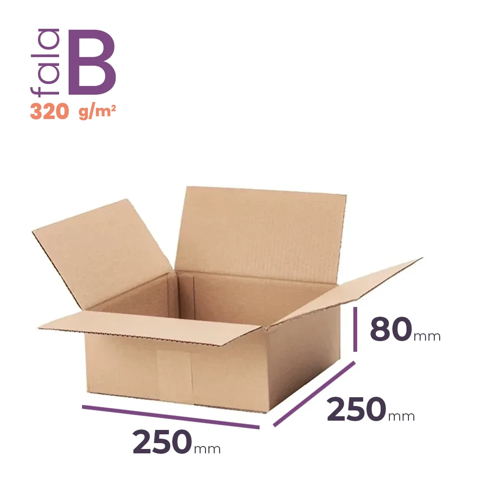 Ten mały karton klapowy o wymiarach 250x250x80 mm to kompaktowe, ale wytrzymałe opakowanie stworzone z myślą o wysyłce drobnych produktów. Wykonany z 3-warstwowej tektury (fala B, gramatura 320 g/m2), jest idealnym wyborem do e-commerce. Posiada pojemność 4,05 litra oraz certyfikat FSC, co czyni go ekologicznym i praktycznym rozwiązaniem do pakowania.