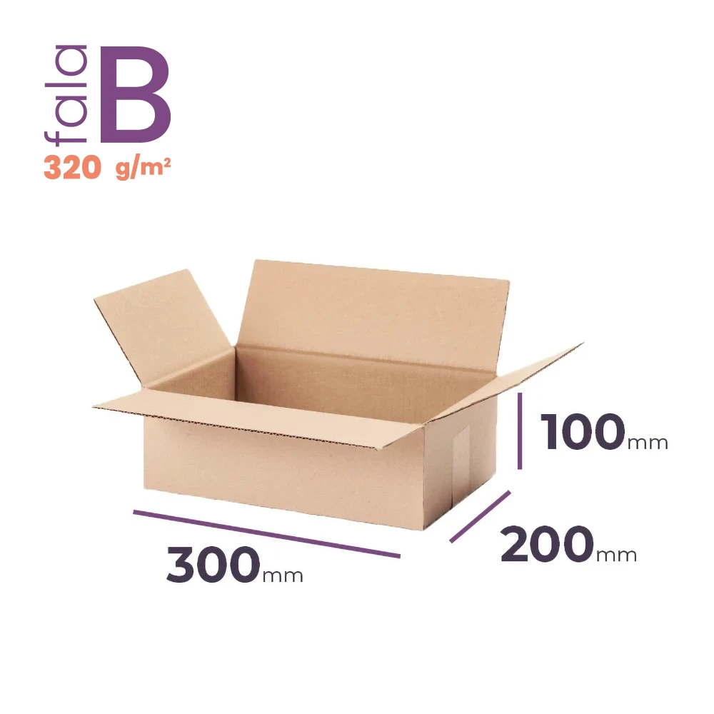 Potrzebujesz niedużego prostokątnego opakowania? Kosmetyki do makijażu, elektronika czy puzzle świetnie zmieszczą się do niskiego kartonu klapowego o wymiarze zewnętrznym 300x200x100 mm - wykonanym z tektury 3-warstwowej o fali B i gramaturze 320g/m2, pojemność 5,02 L. Karton wykonany w 100% z materiałów biodegradowalnych i posiada certyfikat FSC®.