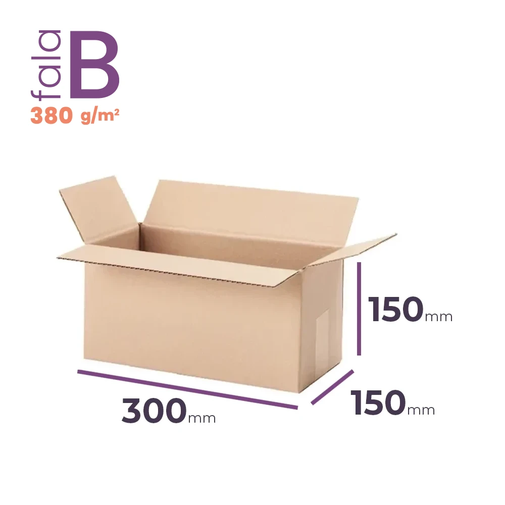 Karton klapowy 300x150x150 mm (wymiar zewnętrzny) to praktyczne opakowanie idealne do codziennego użytku w e-commerce. Wykonany z trwałej 3-warstwowej tektury (fala B, gramatura 380 g/m2), łączy w sobie funkcjonalność, trwałość i ekologiczne pochodzenie – potwierdzone certyfikatem FSC. Jego format doskonale wpisuje się w wymagania popularnych firm kurierskich – spełnia normy dla gabarytu B InPost, M Orlen Paczka, M Pocztex, M DHL, a także pasuje do automatu DPD.
