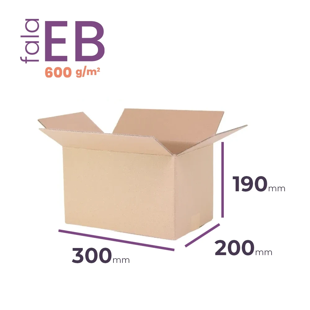 Karton klapowy 5-warstwowy 300x200x190 mm (wymiar zewnętrzny) to mocne opakowanie bardzo dobrze sprawdzające się w wysyłce ciężkich i delikatnych przedmiotów. Wykonany z trwałej 5-warstwowej tektury (fala EB, wysoka gramatura 600 g/m2), łączy w sobie funkcjonalność, trwałość i ekologiczne pochodzenie – potwierdzone certyfikatem FSC.