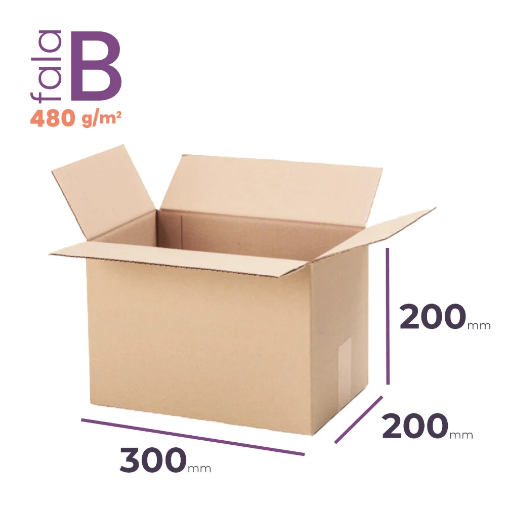 Karton klapowy o wymiarach zewnętrznych 300x200x200 mm to solidne i funkcjonalne opakowanie idealne do wysyłki cięższych i delikatnych przedmiotów. Wykonany z wytrzymałej 3-warstwowej tektury (fala B) o podwyższonej gramaturze 480 g/m2, gwarantuje doskonałą ochronę zawartości. Karton zgodny z FEFCO 201, posiada certyfikat FSC oraz spełnia wymagania gabarytowe: C InPost, L Orlen Paczka, M Pocztex, L DHL i pasuje do automatów DPD.