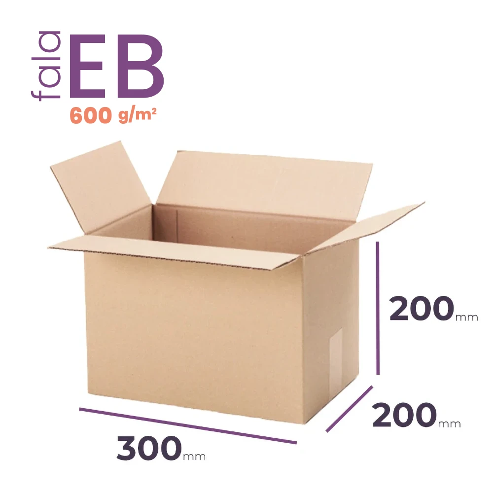 Karton klapowy 300x200x200 mm (wymiar zewnętrzny) to mocne opakowanie bardzo dobrze sprawdzające się w wysyłce ciężkich i delikatnych przedmiotów. Wykonany z trwałej 5-warstwowej tektury (fala EB, wysoka gramatura 600 g/m2), łączy w sobie funkcjonalność, trwałość i ekologiczne pochodzenie – potwierdzone certyfikatem FSC. Jego format doskonale wpisuje się w wymagania popularnych firm kurierskich – spełnia normy dla gabarytu C InPost, L Orlen Paczka, M Pocztex, L DHL, a także pasuje do automatu DPD.