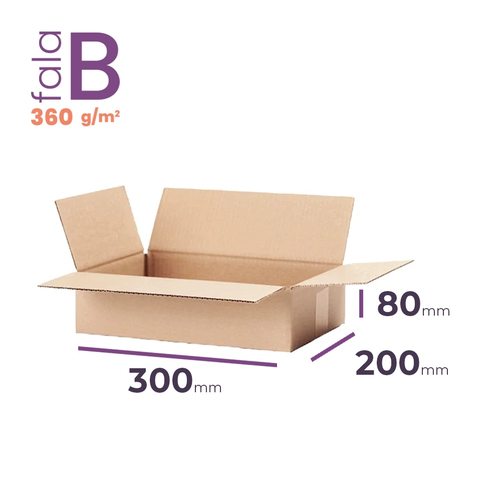 Pudełko wysyłkowe o wymiarach zewnętrznych 300x200x80 fala B - zalety dla Ciebie: