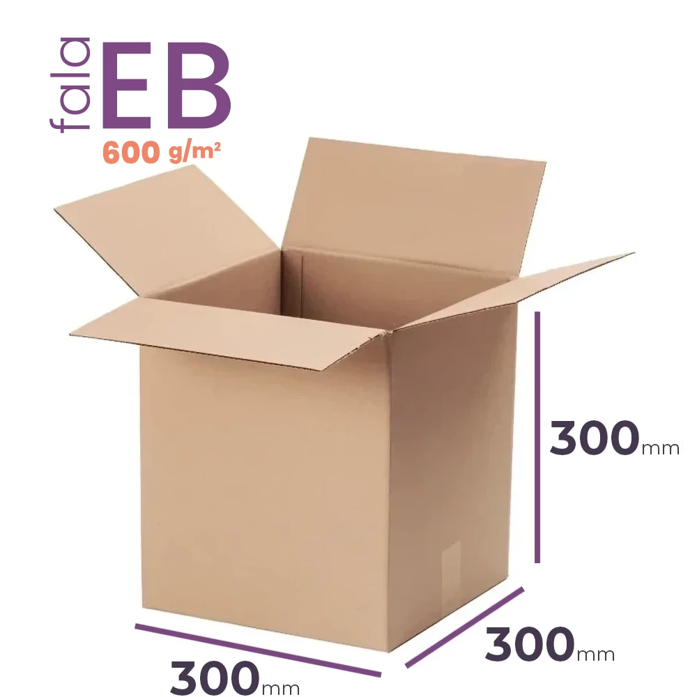 Karton 300x300x300 mm (wymiar zewnętrzny) to stabilny, kwadratowy karton wykonany z 5-warstwowej tektury (fala EB) o gramaturze 600 g/m². Produkowany zgodnie ze standardem FEFCO 201, dzięki swojej wytrzymałej konstrukcji zapewnia optymalną ochronę podczas transportu. Idealnie sprawdza się jako karton dla sklepów e-commerce wysyłających małą elektronikę, gadżety oraz dekoracje.