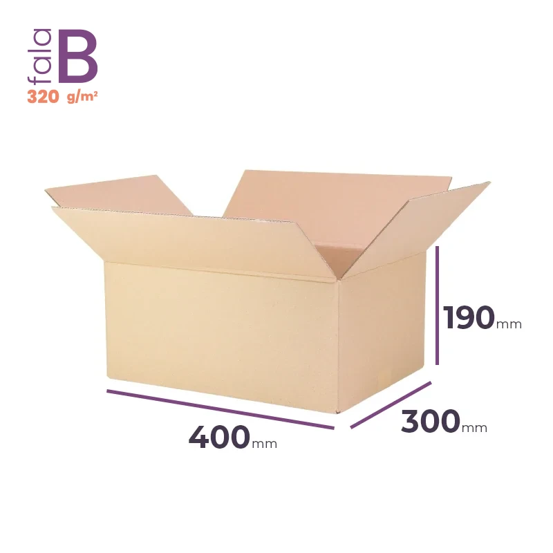 Duży karton klapowy o wymiarach zewnętrznych 400x300x190, uniwersalny karton z wieloma zaletami: