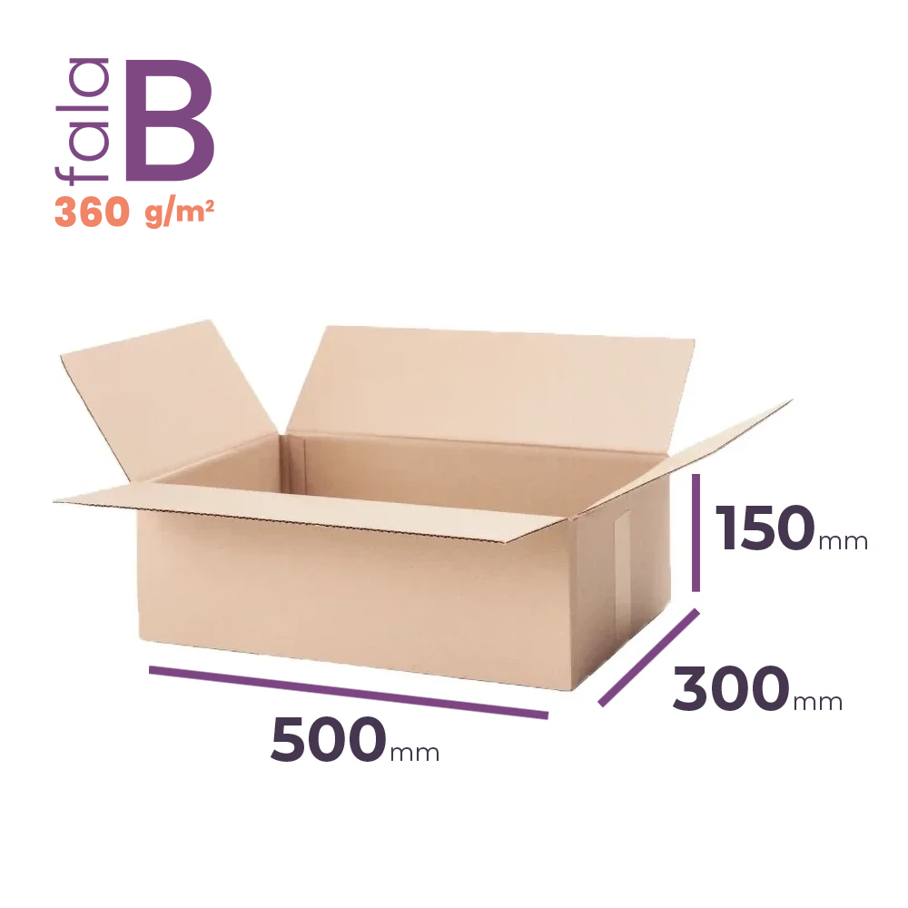 Karton klapowy o wymiarach zewnętrznych 500x300x150 mm to przestronne rozwiązanie do pakowania większych produktów. Wykonany z 3-warstwowej tektury falistej o fali B i gramaturze 360 g/m2, ma pojemność 20,44 litra i posiada certyfikat FSC. To niezawodne opakowanie idealnie sprawdzi się w logistyce e-commerce oraz przy wysyłce przedmiotów wymagających większej przestrzeni.