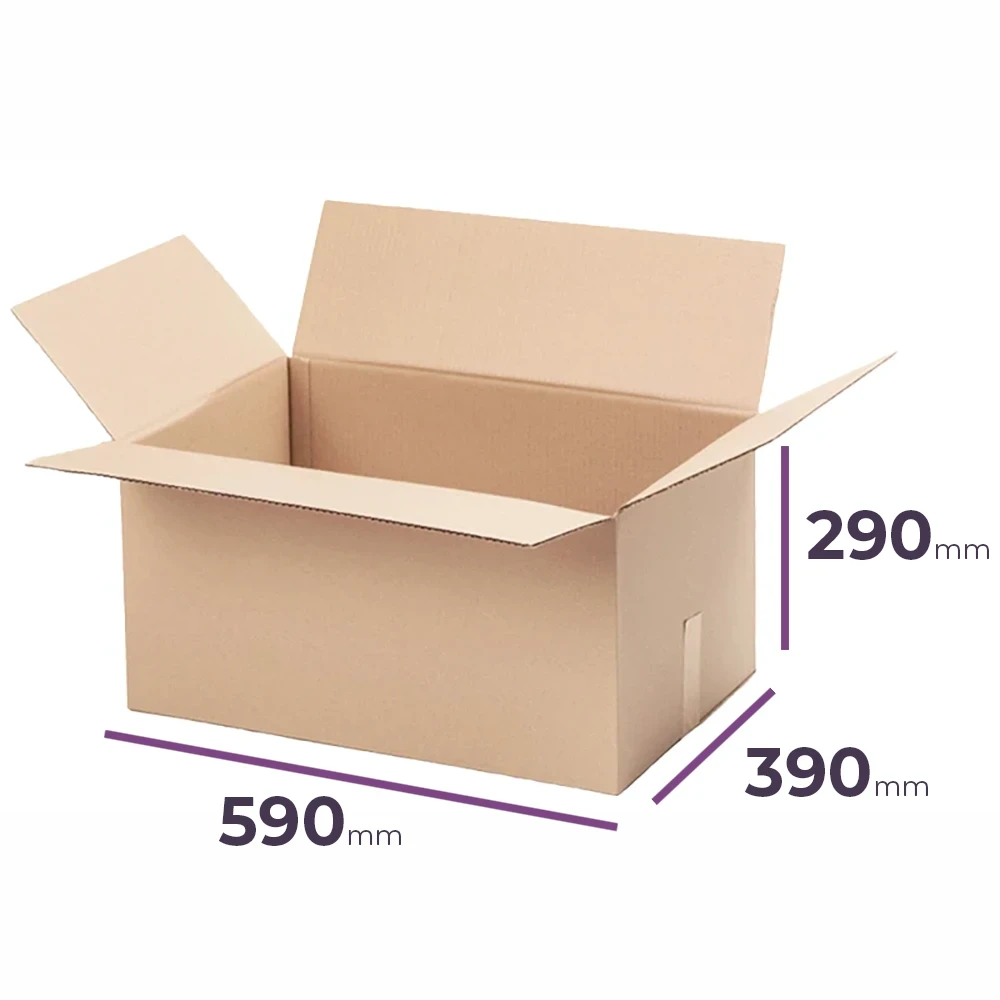 Karton klapowy o wymiarach wewnętrznych 586x386x291 mm to solidne i pojemne pudełko wykonane z 3-warstwowej tektury (fala C, wysoka gramatura 550 g/m2), idealne do wysyłki dużych i delikatnych przedmiotów. Jego duża pojemność czynią go doskonałym wyborem jako karton zbiorczy lub pudełko zbiorcze dla firm logistycznych, e-commerce oraz magazynów. Karton posiada certyfikat FSC, co gwarantuje, że został wykonany z materiałów pochodzących z odpowiedzialnych źródeł.
