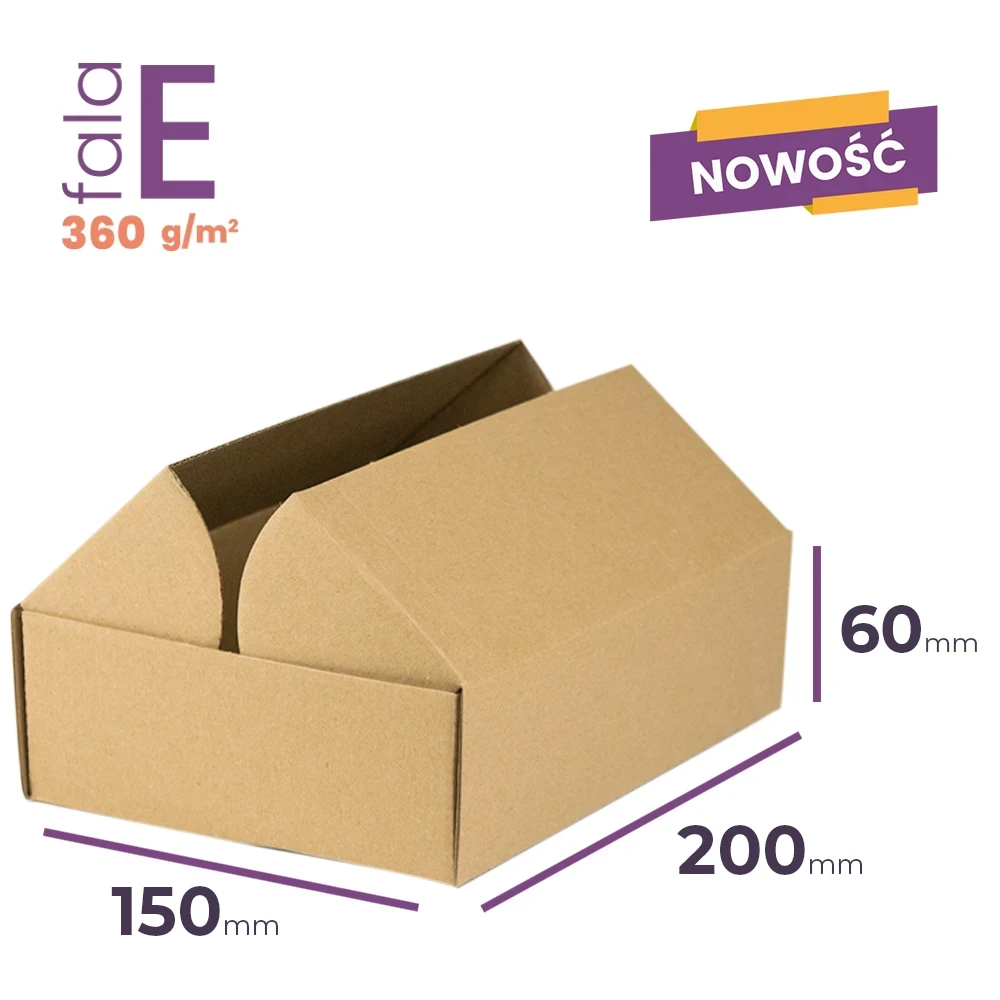 Szary karton wykrojnikowy 200x150x60 mm to wytrzymałe i estetyczne opakowanie, które świetnie sprawdzi się podczas pakowania produktów średniej wielkości. Produkujemy go z 3-warstwowej tektury falistej (fala E) o gramaturze 360 g/m2 dzięki czemu zapewnia niezawodną ochronę podczas transportu. Pod względem wielkości bez problemu pomieści książki, katalogi, gry planszowe, odzież, zestawy kosmetyków, akcesoria elektroniczne czy galanterię.