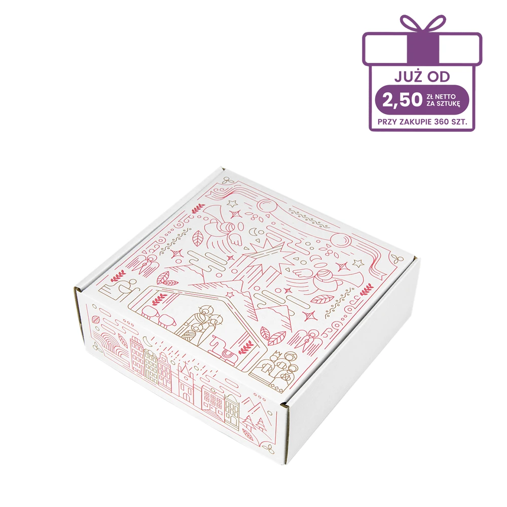 Wybierz karton fasonowy z nadrukiem "Pocztówka", który wprowadza do każdej paczki ciepłą i niezwykle świąteczną atmosferę. Subtelny nadruk szopki, będącej tradycyjnym symbolem świąt, czyni ten wzór wyjątkowo uniwersalnym, a jednocześnie pełnym klasy. To idealne rozwiązanie, aby podkreślić wyjątkowość Twoich produktów, a zarazem zaskoczyć klientów niezrównanym designem! Najważniejszym aspektem zawsze będą detale, które to właśnie wzbudzają najwięcej emocji w każdym kliencie i bardzo często decydują, czy wróci on na kolejne zakupy. Dlatego Twój wybór powinien paść na pudełko świąteczne, które staje się czymś więcej niż tylko opakowaniem – jest nośnikiem świątecznych emocji, elementem budującym pozytywne doświadczenia zakupowe oraz subtelnym ambasadorem marki.