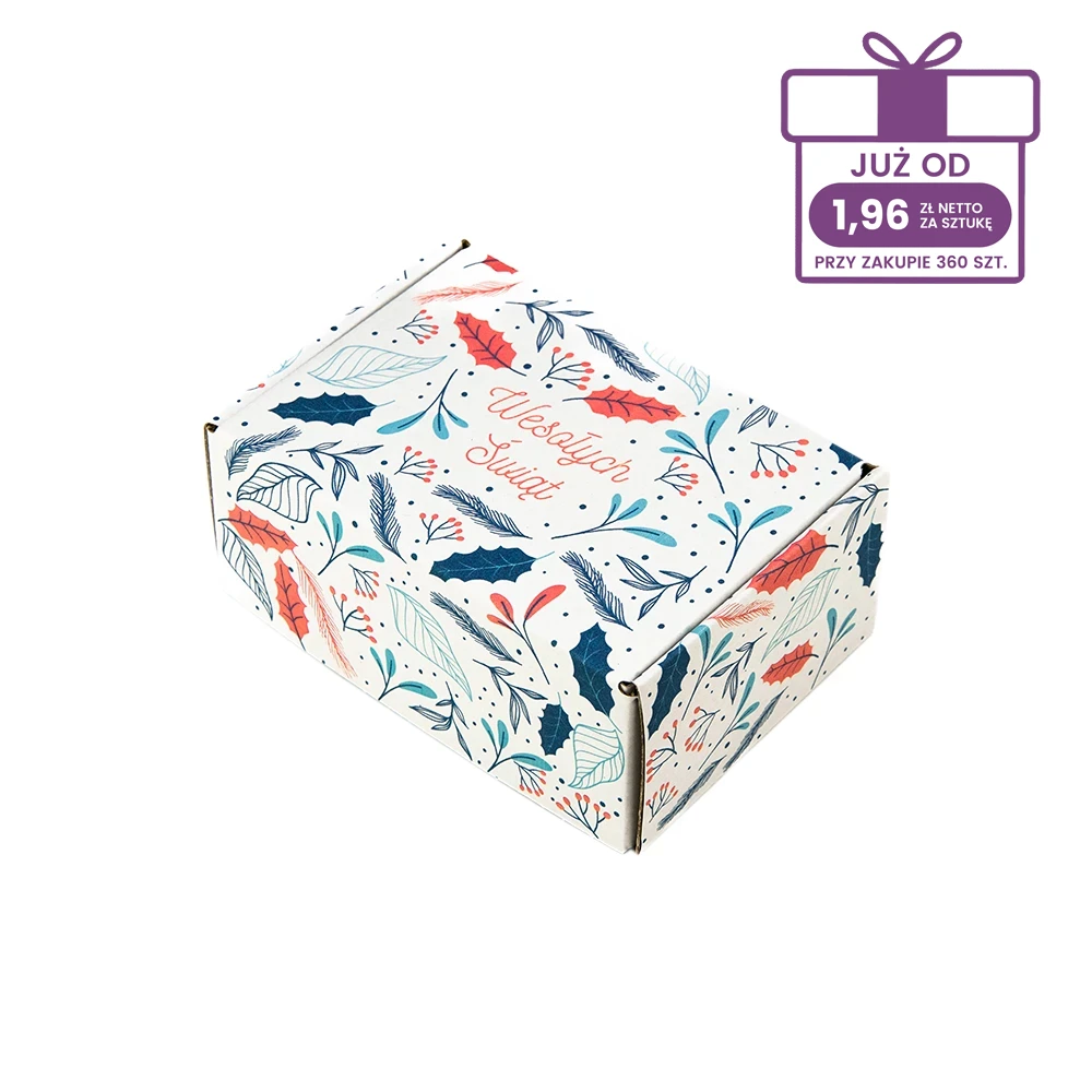 Wybierz pudełko fasonowe z nadrukiem „Świąteczny MIX”, które łączy w sobie świeże i niekonwencjonalne spojrzenie na święta. Motyw roślinny w połączeniu z retro kolorystyką sprawia, że opakowanie od razu przykuwa wzrok i wyróżnia się na tle klasycznych wzorów bożonarodzeniowych. Nietypowa paleta barw nadaje mu awangardowy charakter, dzięki czemu karton świąteczny staje się nie tylko ochroną dla produktu, ale także elementem budującym doświadczenie zakupowe. To opakowanie, które budzi emocje, wzbudza zachwyt i inspiruje do dzielenia się nim w social mediach – a to realnie wspiera rozpoznawalność Twojej marki i jej pozytywny wizerunek.