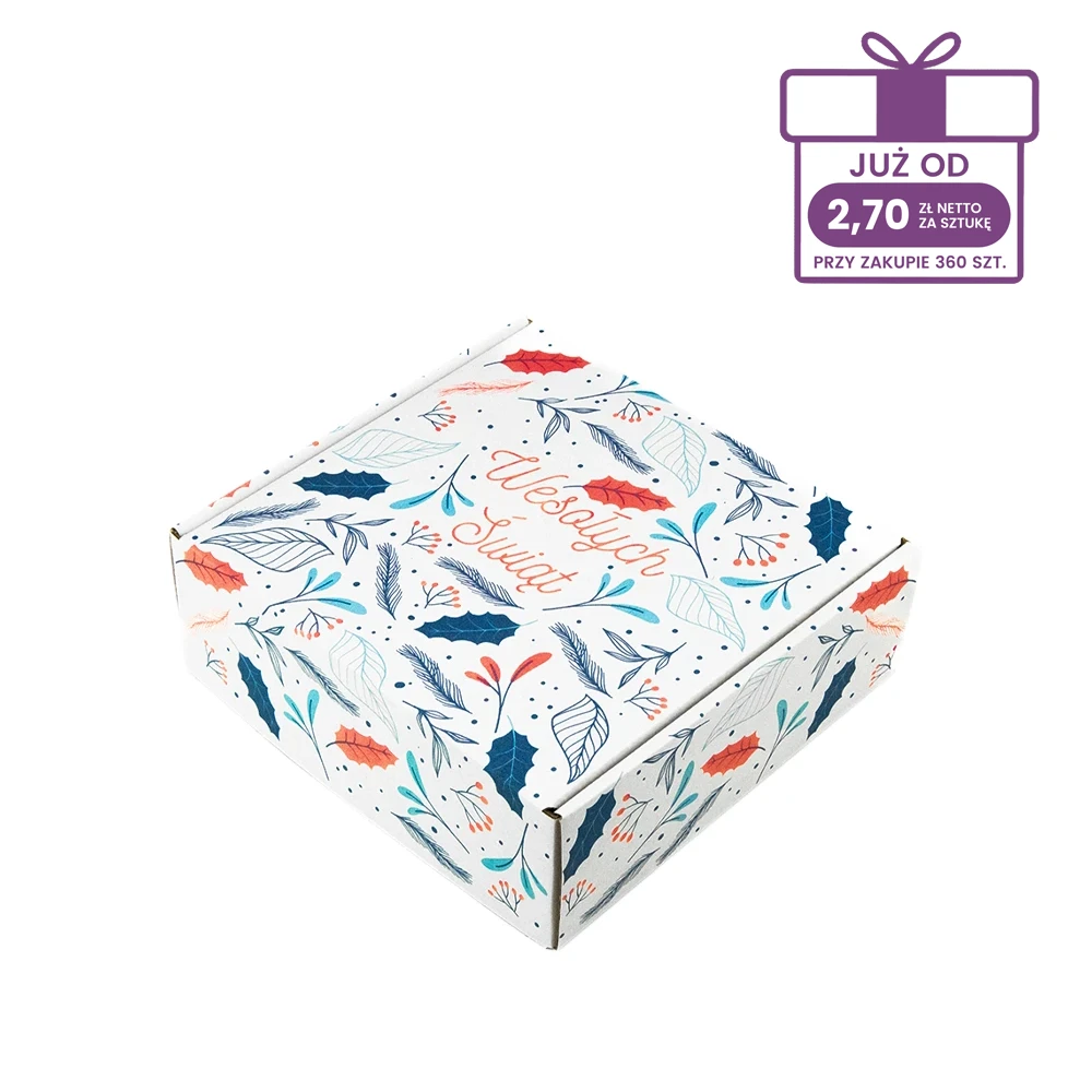 Nie potrzebujesz dodatkowego papieru ozdobnego! Karton ozdobny świąteczny sam w sobie wygląda jak prezent. Wystarczy drobny dodatek, np. wypełniacz i kawałek sznurka, by stworzyć eleganckie opakowanie upominkowe. Format 200x200x70 mm idealnie nadaje się do pakowania biżuterii, galanterii, eleganckich dodatków, kart podarunkowych czy zestawów kosmetyków. To świetna opcja dla marek, które chcą wyróżnić się estetyką, a przy tym nie rezygnować z funkcjonalności.