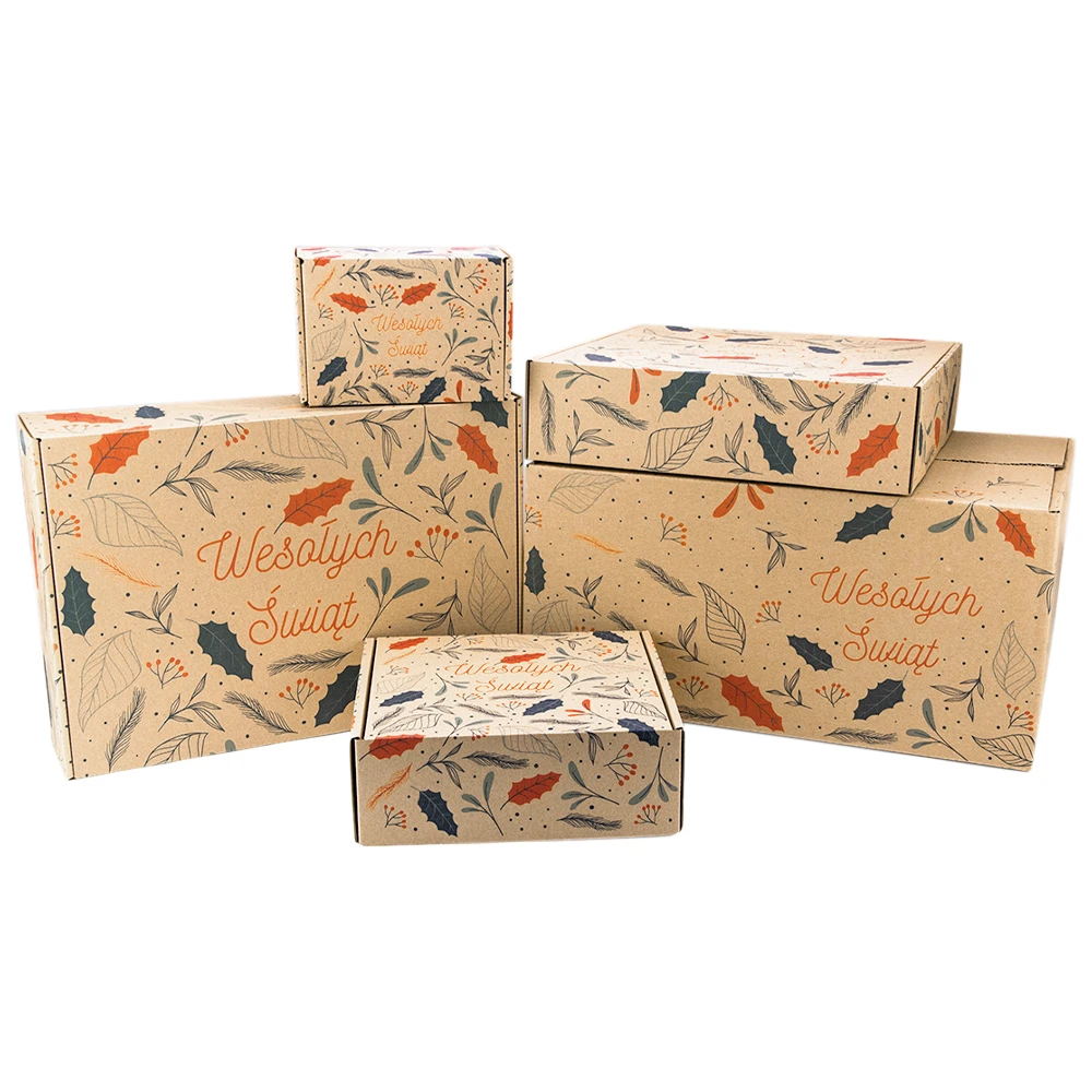 Karton fasonowy z nadrukiem „Świąteczny MIX” przełamuje schemat tradycyjnych opakowań bożonarodzeniowych. Zamiast klasycznej czerwieni i zieleni, wykorzystuje mocne kolory w stylu retro, które nadają mu świeżości i nowoczesnego charakteru. Subtelny, roślinny motyw dekoracyjny sprawia, że paczka prezentuje się elegancko i nietuzinkowo. To doskonały wybór dla marek, które chcą podkreślić swoją oryginalność i wyjść poza utarte wzorce. Tak zapakowane zamówienie nie tylko skutecznie chroni produkt, ale także zwraca uwagę i wywołuje emocje – idealne do dzielenia się w social mediach. Pudełko na święta wzmacnia wizerunek marki i buduje trwałe wrażenie u klienta.